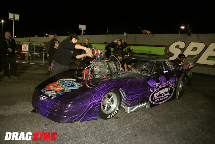 “The car had a big engine failure and after I got into the fluids coming out of the engine it smacked the wall causing some damage. At that point, I decided it was time to just go through the car and have it updated since it was built using old Outlaw 10.5 rules. The front half of the car was really gone through the most and a lot of weight came out of the car. Now we can run in Outlaw 10.5 or Limited Drag Radial, and I can even run Radial vs The World since there is plenty of weight that can come out of the car,” Mewshaw explains.