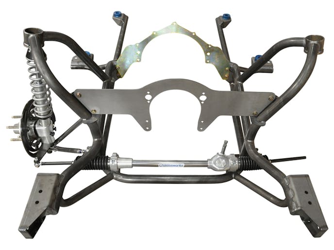 For those who have a car that isn’t covered by a bolt-in option from Chris Alston’s Chassisworks or they want something different a custom-fit option is available. These front clip kits can be purchased in 1 5/8-inch round tube or 3×2-inch boxed steel versions. Each kit comes unassembled with provisions to mount either VariStruts or Strange Struts, mounting locations for steering, control arm mounting tabs, and hardware. You can also purchase these kits with all the necessary parts to create a full front suspension.
