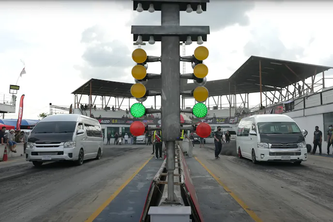 As we learned only from listening to Burdette’s explanation of how this call came about, Thailand has less of a national or local government-backed medical transport system, nor fewer corporate ambulance conglomerates as we are accustomed to here in the United States. Instead, individual contractors own and operate many of the ambulances in use in the country with vans they own privately, and a number of them moonlight as drag racers with the same vehicle. The same goes for school transport vans, utilized privately to take kids to and from school in the country. The owners are hot-rodding their vans with turbochargers, lowering suspension and brake kits, and aftermarket wheels and drag radials, giving them a huge boost (no pun intended) in performance on the dragstrip, to the tune of 15-second 1/4-mile elapsed times.