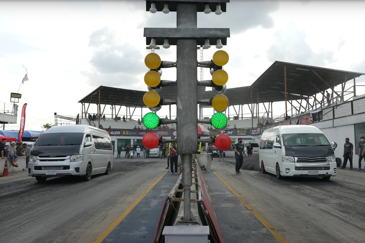 As we learned only from listening to Burdette’s explanation of how this call came about, Thailand has less of a national or local government-backed medical transport system, nor fewer corporate ambulance conglomerates as we are accustomed to here in the United States. Instead, individual contractors own and operate many of the ambulances in use in the country with vans they own privately, and a number of them moonlight as drag racers with the same vehicle. The same goes for school transport vans, utilized privately to take kids to and from school in the country. The owners are hot-rodding their vans with turbochargers, lowering suspension and brake kits, and aftermarket wheels and drag radials, giving them a huge boost (no pun intended) in performance on the dragstrip, to the tune of 15-second 1/4-mile elapsed times.