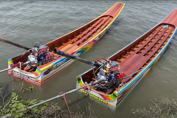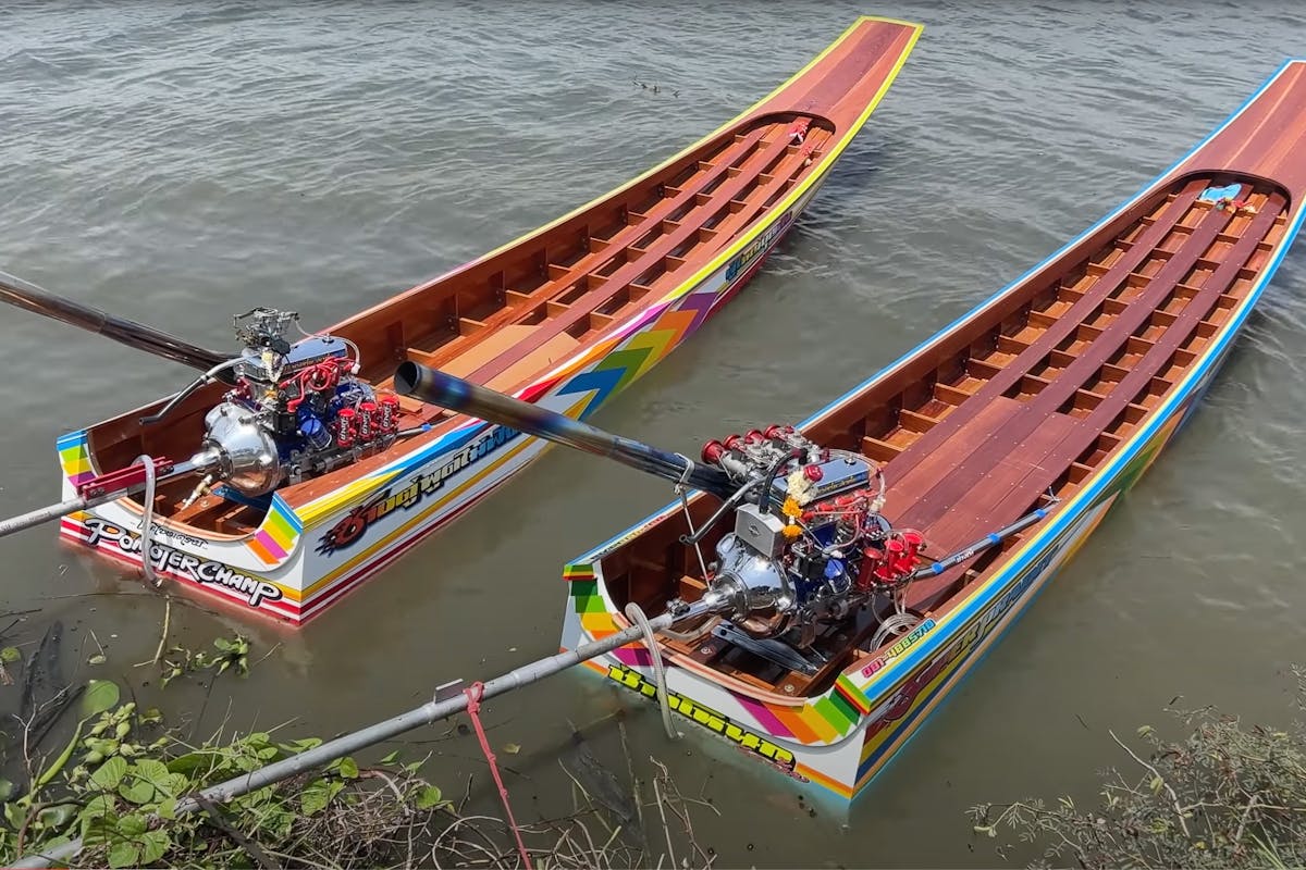 Going a step further on water, the Thai people also race what are known as longtail boats, or specially crafted wooden hulls with no seat or steering wheel. These hearty souls build up some very nice, modified Toyota 5K, Honda K-Series four-cylinder gas, and Isuzu J-Series turbo-diesel engines, attached to manually operated shafts leading out to a propeller that both powers and steers the boat. The boats are raced on a dig side-by-side over set distances in front of sizable crowds, and you’ll also find these guys ripping up and down the lake doing long-distance, high-speed runs just for giggles. Because with that kind power on the water, who wouldn’t?