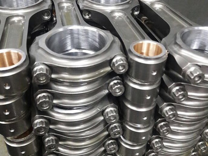 “The most common material used in connecting rods is 4340 steel. Connecting rods can also be made from 300M steel, and it’s the top-of-the-line material you can use before titanium. This material is really good for high-power applications that need to take care of the weight since it is between 11- and 15-percent lighter, stronger, and more elastic than 4340 in same application rods. Finally, you have titanium — it’s very expensive but can be up to 40-percent lighter than 4340 while still handling big power.”