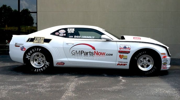 Connolly will be driving and tuning the stunning 2012 COPO Camaro he recently raced to a strong semifinal finish at the 4-Wide NHRA Nationals, which sported a “Grumpy’s Toy” tribute paint scheme. A salute to Bill “Grumpy” Jenkins, Connolly’s mentor, will remain on the car, taking up new residence on the rear fenders, while the doors will now be adorned with GMPartsNow.com.