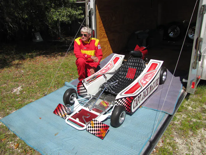 This kart, if you can believe it, actually went quicker than six seconds in the quarter-mile back in its heyday, at well over 200 mph — which gives you a sense of just how brave a soul Jack really was and still is. Unfortunately, the track and the Manufacturers Cup staff nly gave allowance to do eighth-mile spurts, but McClure took what was given to him and ran with it, making a best pass of 4.73 at just 136 mph, indicating he indeed lifted early.