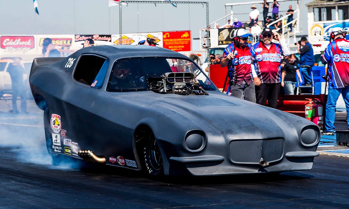 Now, Meadors finds himself strapped into a Brad Hadman-built chassis, behind a 314 cubic inch, cackling Alan Johnson Hemi, cloaked by a 1970 Chevrolet Camaro body.