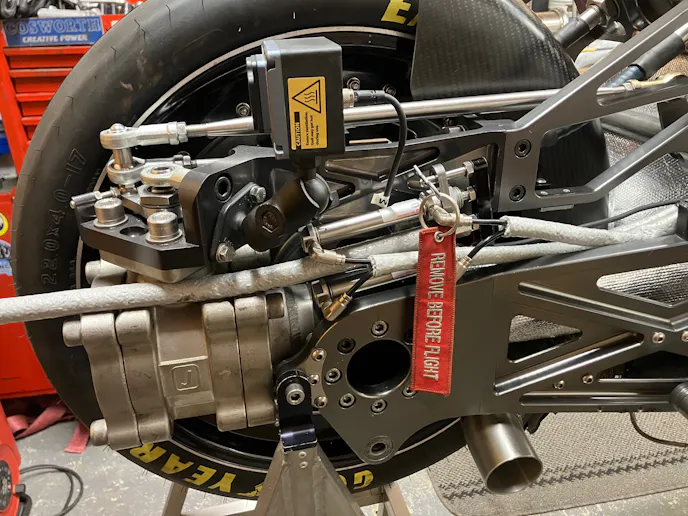 Data showed the bike was traveling 206 mph at 549 feet. The run wasn’t clean, as Sykes was pushed off line, leaning hard enough to wear through part of the carbon undertray and his boot. But the number stood. That 5.51 places the bike as the third quickest ever, behind Eric Teboul’s rocket motorcycle at 4.97 and Larry McBride’s wheel-driven Top Fuel Motorcycle at 5.50.