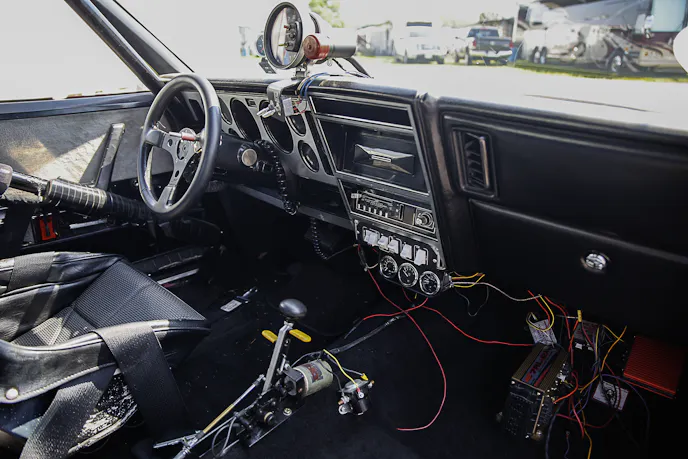 Because Gregory campaigns the Mirada in Super Stock GT trim, he’s allowed to use an engine from a different vehicle. To gain the best possible advantage, he chose to run a 1976-era 400 cubic-inch Mopar engine. Power is sent through a 727 transmission and an ATI torque converter. The combination typically runs in the 10-second zone while competing under a 12-second index.