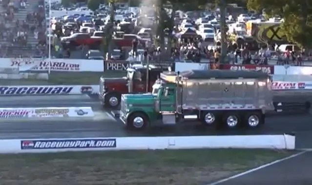 29 classes were on tap and drivers would compete until only two trucks remained. The pair would then square off for the big $5,000 grand prize. Now it may be hard to imagine the trucks that keep our world moving with deliveries and such on the drag strip, but we all have to have our day at the track every once in a while and this day was for the heavy haulers. When it came down to the final pairing it was a dump truck and a semi tractor getting it done on the quarter mile.