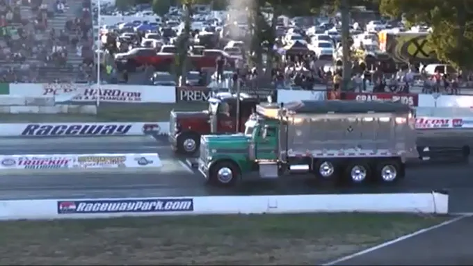 29 classes were on tap and drivers would compete until only two trucks remained. The pair would then square off for the big $5,000 grand prize. Now it may be hard to imagine the trucks that keep our world moving with deliveries and such on the drag strip, but we all have to have our day at the track every once in a while and this day was for the heavy haulers. When it came down to the final pairing it was a dump truck and a semi tractor getting it done on the quarter mile.