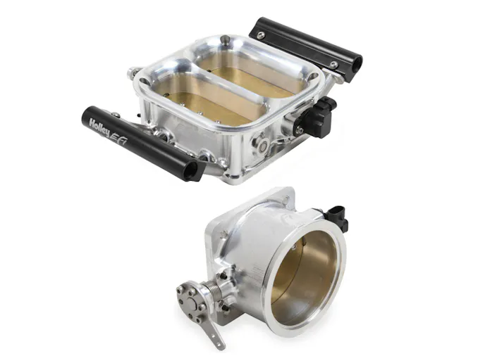 New from Holley – billet EFI throttle bodies. New offerings include the 2550 cfm Dominator Flange Throttle Body and 105mm Mono Blade Throttle Body, and both come with indexable throttle levers.