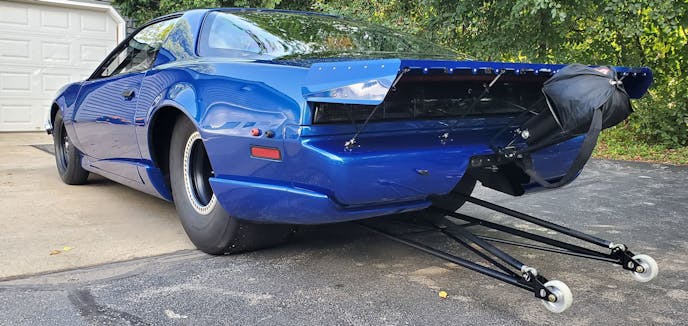 When Grant got the Firebird home it was obvious it needed a lot of work, so family friend Ron Broetzmann stepped in to help. With Broetzmann’s assistance, Grant was able to get the engine set in place, build some headers, get the wheelie bars situated, and a whole lot more. Nick helped out with his industry contacts to finish out the chassis with parts from Strange Engineering and Menscer Motorsports.