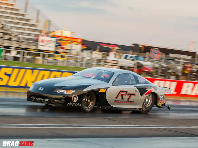 After retiring his record-setting Honda S2000, Bales moved on to his current Don Ness-built Honda Accord that still sports a small but mighty Honda powerplant. Bales has campaigned the Accord in both Competition Eliminator and Top Sportsman, but its best results have come in the Modified Pro Compact class. By running in Modified Pro Compact Bales has the ability to get plenty of racing in each year before the WCF event.