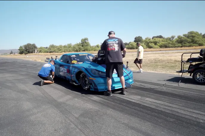 Alex Laughlin didn’t bring a knife to this gunfight, as his 2012 Corvette makes 4,000 horsepower and has won plenty of big races in its day. The airport runway’s surface wasn’t going to provide nearly enough traction to allow Laughlin to unleash the Corvette’s power. Laughlin’s team turned the wick down on the big HEMI and added extra weight to the rear of the car to allow it to gain some traction.