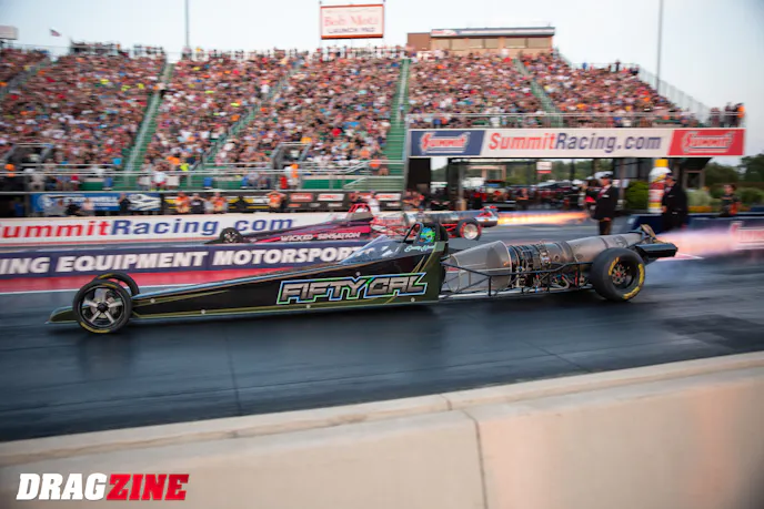 Once a few fireballs have been shot off to give the crowd a show and burn off fuel, it’s time for the staging process to begin. Inside the car, the driver is watching his gauges to make sure all is well, and they begin the final push into the beams. If everything is ready to go, when the tree fires, the driver drops the hammer and goes for one heck of a ride.