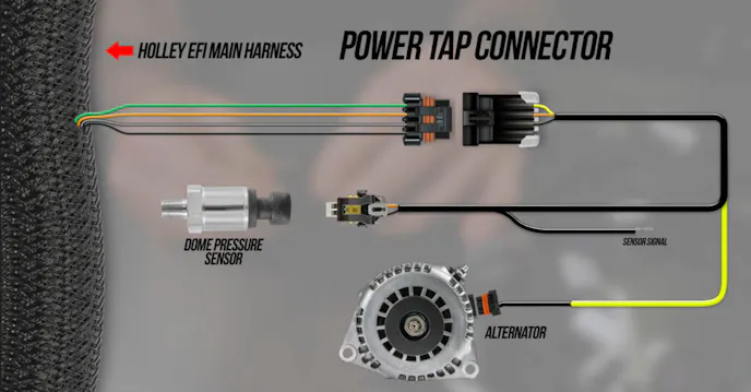 The Power Tap is a dedicated four-wire connector that Holley has built into its harnesses. This creates an easy access point to the harness that eliminates the need to do any cutting or splicing.