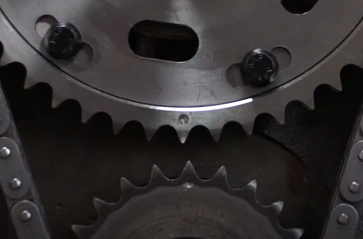 Should you need to make timing adjustments, you can accomplish that using an adjustable timing set like the one from PBM used on the Motown small-block engine in the video.