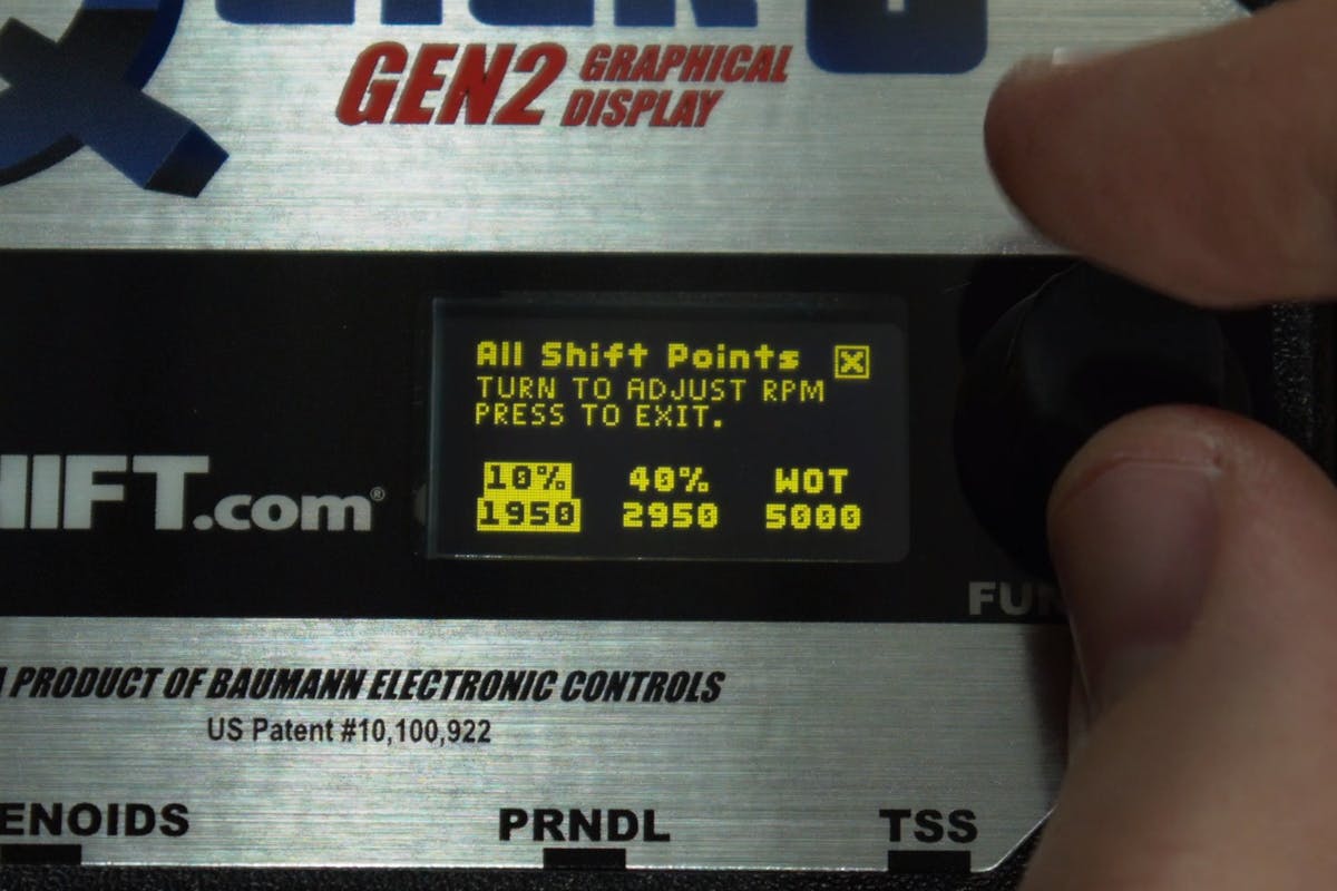US Shift made sure the home screen of the display provides you with a wealth of information about what exactly the transmission is doing. You can see useful data like the transmission temperature, the current gear you’re in, what calibration table you’re using, and any current error codes. There’s also an information screen you can select as the Gen2’s main display while the vehicle is operating. This screen will show you the TPS value, battery voltage, transmission line pressure, and RPM.