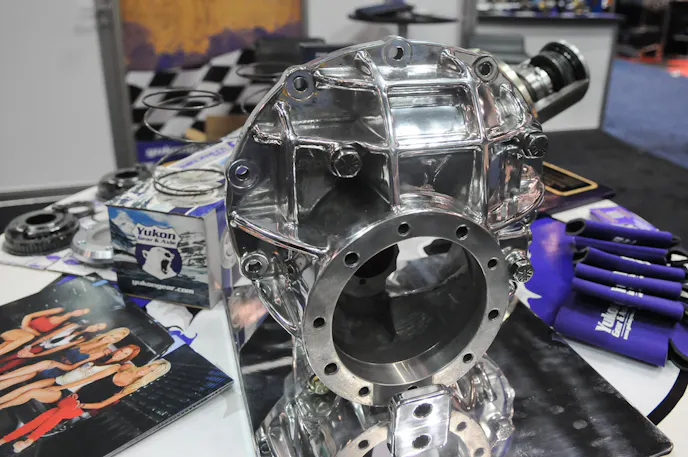 If it uses axles, gears, differentials, pinion supports, and the like, the team at Yukon Gear & Axle has a part to fit the bill. The renowned driveline and rearend component manufacturer has a host of products on display at the IMIS show here in Indianapolis, including an aluminum, three-bolt design case for the Ford nine inch rear end housing that’s aimed largely at the drag racing or high performance street/strip crowd.