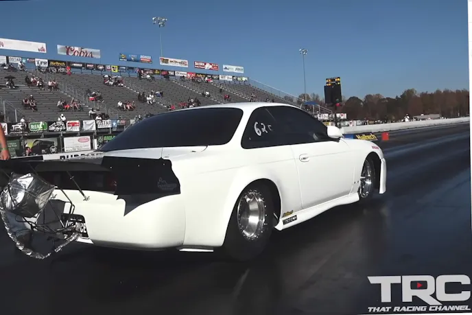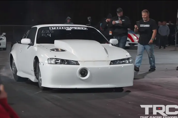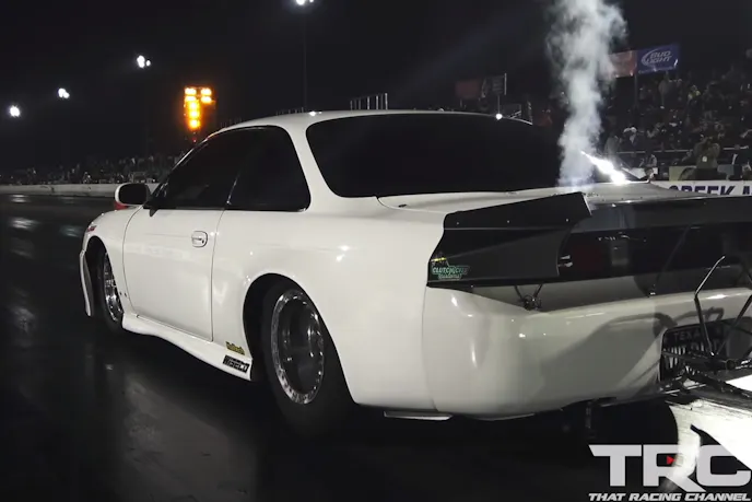 Radial racing has traditionally been dominated by V8-powered domestic cars, however, with import racers making huge strides in performance some have dipped their toes into the small-tire arena. The Nissan 240 owned by Duy Bui and maintained by ProSpeed Autosports known as “White Rice” is one of the cars that’s jumped into radial racing, and the recent revisions to the car are showing serious potential.