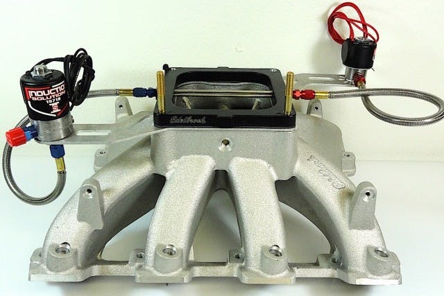Designing a nitrous system for a race engine takes into consideration all the critical factors such as vehicle weight, tire size, displacement, compression ratio, cam timing, type of fuel, induction choices, ignition and fuel delivery controls as well as proposed racing venues. Rules may dictate certain designs for specific applications but Induction Solutions can plumb a nitrous system into just about any powerplant, whether it calls for a plate or direct-port system or a multi-stage setup. Beyond the system design, Induction Solutions is also eager to provide tuning advice as needed.