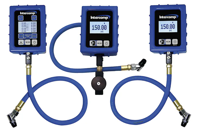 Intercomp’s 150.00 PSI Digital Air Pressure Gauge is a real workhorse that can be set up for ultra-low or high pressures depending on the application. The 150.00 PSI Digital Memory Air Pressure Gauge can store and recall pressure data for up to 10 sets of tires. This gauge can also connect to Intercomp’s iRaceWeigh App for recording and tracking purposes. The 150.00 PSI Digital Fill, Bleed, & Read Pressure Gauge does everything the standard Digital Gauge does, plus it can attach to an air or nitrogen hose to fill, bleed, and read.