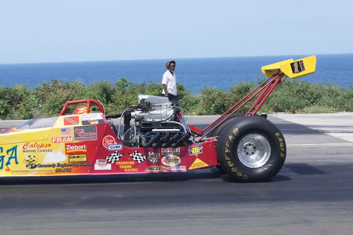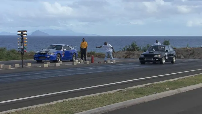Nevis, the smaller of the two islands — the other being Saint Kitts — that comprise the nation officially known as the Federation of Saint Kitts and Nevis, is just a meager 36 square miles in total area, but it does have a dragstrip. Located on the Eastern side of the island, the track measures 1,000-feet in distance and has the modern conveniences you’d expect of a legitimate dragway, including the christmas tree and timing system, and a sand trap at the end of the relatively short shutdown area. Noticeably absent, however, are guardrails; go off the track to the left and you’ll end up on the adjoining return road, and to the right, you’ll plunge down onto the shoreline. But regardless, it’s a place to race, legally, for the islanders who call the beautiful part of the world home.