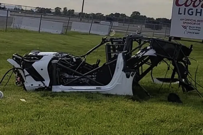 Hoard had to be cut by emergency personnel from the mangled wreckage of the car, which is in all likelihood a complete loss. According to reports, but unconfirmed, Hoard suffered broken ribs and a potentially collapsed lung, but was able to recount the incident and reflect on his safety preparations in the hours after the incident.