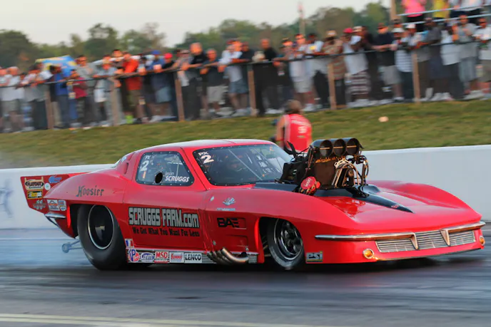 The ADRL‘s Pro Extreme class features the baddest of the bad in the world of doorslammer racing, with eighth-mile times in the mid 3.50’s and speeds well over 210 MPH. This past weekend at the ADRL’s World Finals at Royal Purple Raceway in Texas, two-time Pro Extreme champion Jason Scruggs’ insane 1963 Corvette recorded the highest speed in Pro Extreme history not once, but three times during the course of the event.