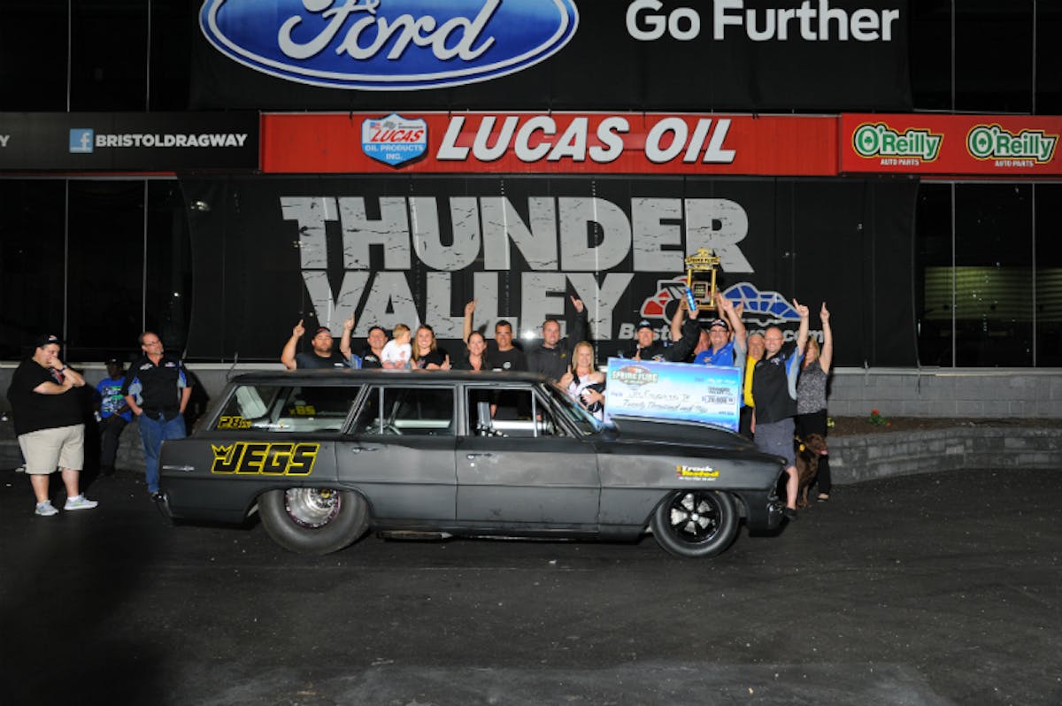 Coughlin brought two cars to the Bristol Spring Fling, a JEGS.com Chevy II wagon and a JEGS.comdragster. The Chevy II has been a consistent car for Coughlin, but Wednesday it began to drop off elapsed time.