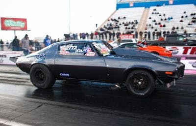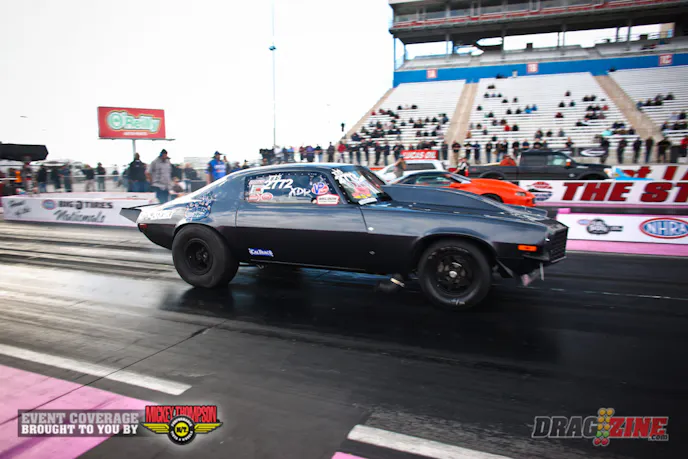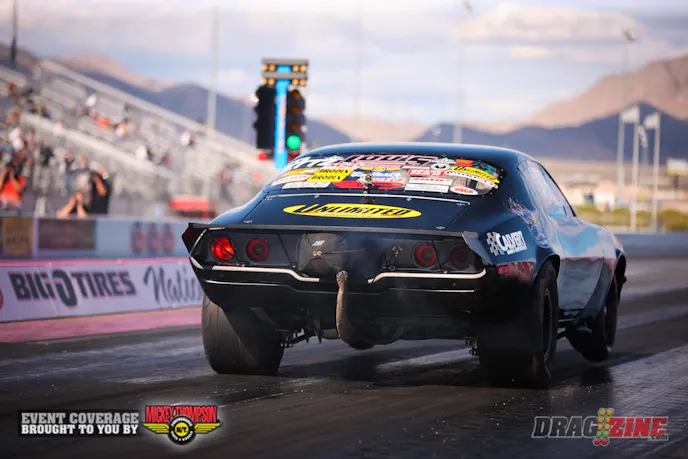 In the opening round of eliminations on Sunday, the supercharged, big block-powered Camaro rolled to a 6.993 at a booming 206.83 MPH, compliments of a 1.246 short time, a 4.630 at 165.46 to half track, and a 5.90 to 1,000-feet. At one time, a six-second run may have seemed improbable on leaf springs, largely because the rather primitive form of factory suspension was an under-appreciated afterthought in a world of four-links and high tech aftermarket suspension components. But the accomplishments of Jimenez and company is a prime example of what dedication can produce.