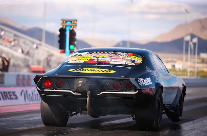 West coast radial tire racer Al Jimenez has been one of the hardest working racers in the business in recent seasons, taking the road less traveled with the continued use of a leaf spring rear suspension setup and not just competing with the the rest of the class, but often outgunning the competition. Along the way, the Sylmer, Calif. native has rewritten leaf spring records like it’s his job, and over the weekend, the veteran racer finally accomplished one of his ultimate goals when he became the first racer to record a six-second elapsed times on leafs at the Street Car Super Nationals at The Strip as Las Vegas Motor Speedway.