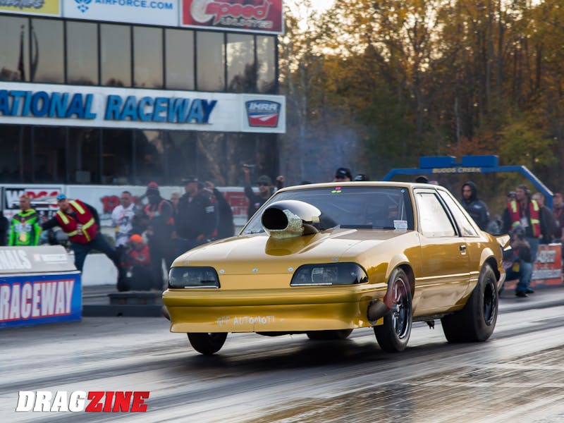 He carded an .888, 5.191 in the first round of eliminations but struck the tires at the hit in a round two loss to Duane Shields. His 5.121 was the seventh-quickest run in Top Alcohol Dragster history, and three of his four time-cards were among the top 10 quickest by a blown alcohol dragster all-time. The previous mark had stood at 5.151, set by Shawn Cowie at the Winternationals in Pomona earlier this year.