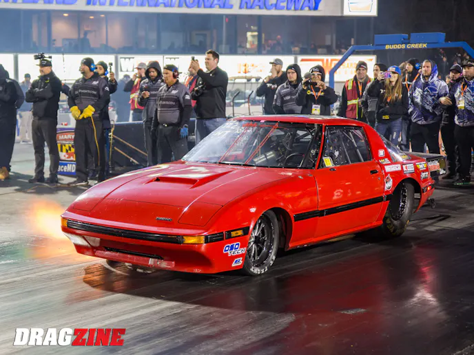 He carded an .888, 5.191 in the first round of eliminations but struck the tires at the hit in a round two loss to Duane Shields. His 5.121 was the seventh-quickest run in Top Alcohol Dragster history, and three of his four time-cards were among the top 10 quickest by a blown alcohol dragster all-time. The previous mark had stood at 5.151, set by Shawn Cowie at the Winternationals in Pomona earlier this year.