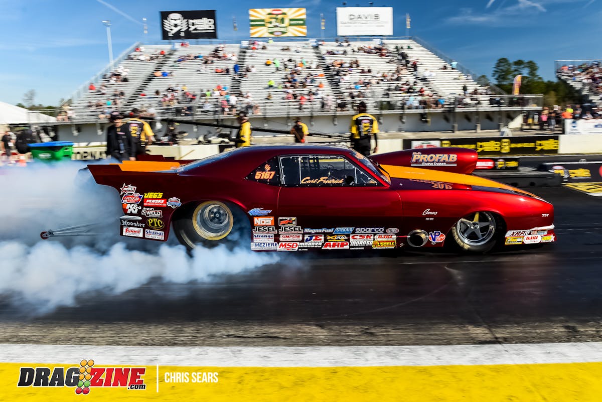 Hopeful that he had taken care of his fuel delivery issue, Langer headed to the 16th Annual NMCA Muscle Car Mayhem in early March at Bradenton Motorsports Park in Florida, where he ran to an 8.51 to qualify in the eighth spot in Fastest Street Car NA 10.5, picked up to an 8.03 to win the first round of eliminations, and picked up even more to a 7.98 in the second round of eliminations, but was defeated by Robbie Blankenship, who was 7.90 in his Mustang.