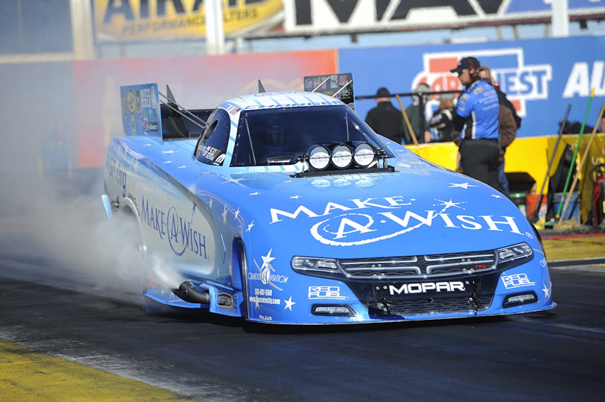 Other notable runs in Funny Car from the day included a 3.919 at 320.66 from Ron Capps in the NAPA Auto Parts Dodge Charger and a 3.962 at 326.79 from two-time world champ Matt Hagan in the Mopar Dodge. Past Phoenix winner Alexis DeJoria was the quickest of the Kalitta Funny cars with a 3.972 at 320.51 in her Tequila Patron Toyota Camry, followed by defending Funny Car world champ Del Worsham with a 3.983 at 320.81 in his DHL Camry.