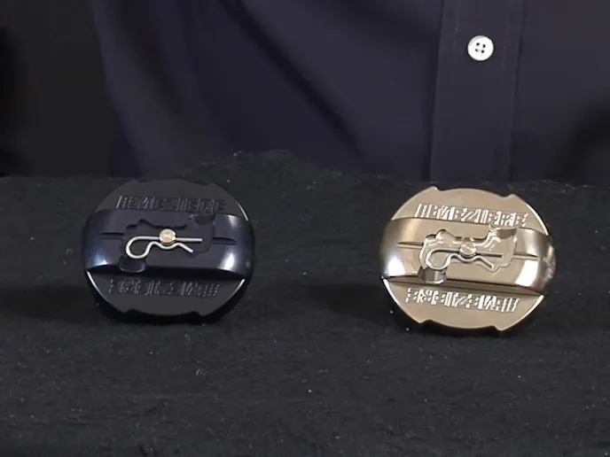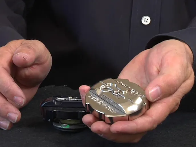 The patent pending locking feature on cap uses a stainless steel retaining pin and locking shell to secure it to the cap in place on the radiator. The cap system is made of billet aluminum to make it much stronger than the standard cap and to prevent any type of warping over time. Each cap can be purchased in a variety of finishes and different pressure ratings to match the application for each cooling system.