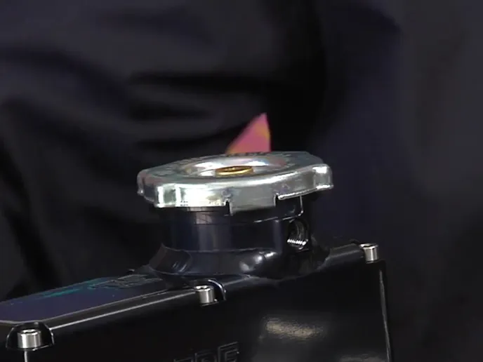 With the pressure on a cooling system, a standard radiator cap can fail, putting fluid down at the worst possible time during a run at the track. An ordinary radiator cap is made of lightweight stamped steel that can deform over time with the cycling of the cooling system.
