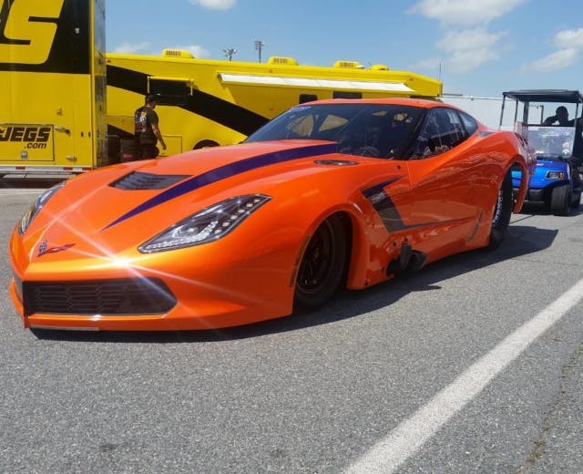 El General Racing has been quietly sneaking up on some new and improved ideas and parts rolling into the 2016 PDRA Pro Extreme season. Car owner Jose Gonzalez has enlisted some of the top names in the sport to help take his Jerry Bickel Race Cars-built C7 Corvette from wild to even wilder. Featuring a bright new orange paint scheme for 2016, Gonzalez is out to prove that the twin turbocharged combinations can run with the screw-blown monsters that dominate the Pro Extreme class.