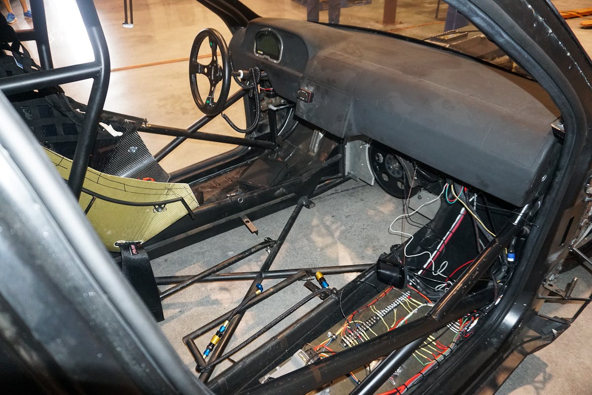 Mullins tabbed Jeff Miller to construct the chassis, and acquired lightweight replacement body panels (the hood, quarter panels, roof, doors, etc.) from China to keep the weight down, sharing that the panels are “cheap and crappy, but they’re lightweight. I certainly wouldn’t want it on my daily driver.”