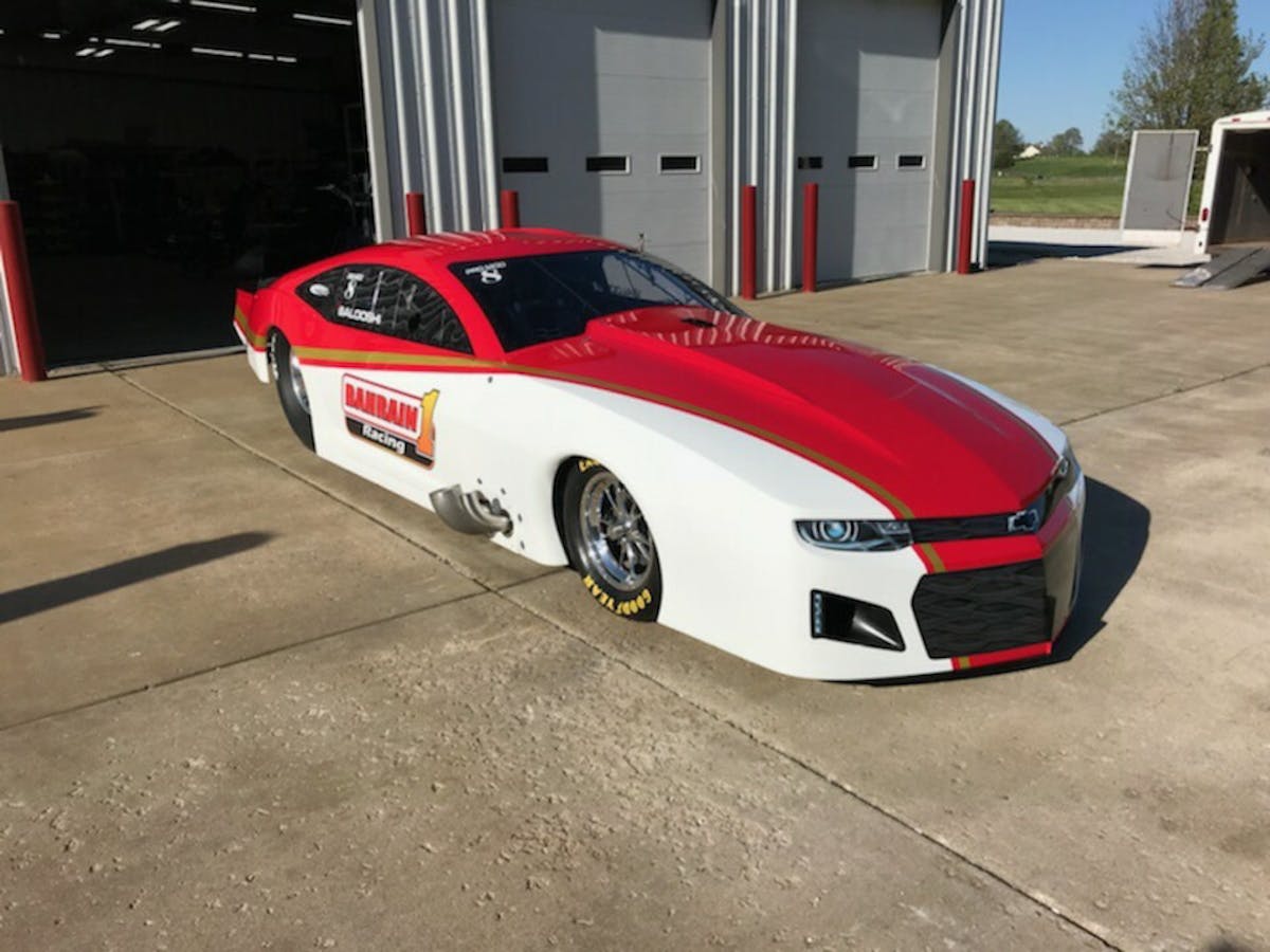 Khalid Al-Balooshi has always been a tough competitor in the E3 Spark Plugs NHRA Pro Mod class and it looks like he’s about to make things more difficult on the competition with a switch to boost. Jerry Bickel Race Cars released shots of Al-Balooshi’s brand new Bahrain 1 sponsored 2019 Camaro that he just took delivery of and he’s ready to start putting laps in on the fresh pipe.