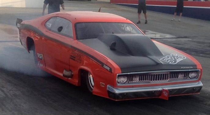 Regarded as one of the finest supercharged tuners in the country, Tutterow showed the world what he could do with another form of boost earlier this week when he both tuned and drove the twin-turbocharged Plymouth Duster owned by Precision Turbo to a mind-numbing 216 mph blast during an R&D testing session with a pair of experimental turbos at North Carolina’s Farmington Dragway.