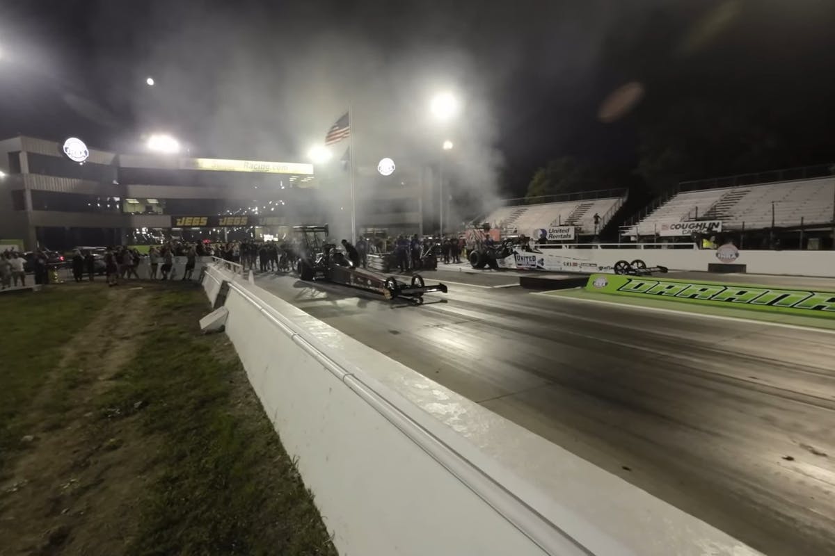Race day brought a “monsoon” and more delays. Despite a broken clutch lever in round 1, Krista Baldwin skillfully lifted early and secured the win. “It wasn’t pretty, but a win is a win,” she said. Her momentum continued through the semifinals, culminating in her first career Top Fuel final round against her good friend Scott Palmer.