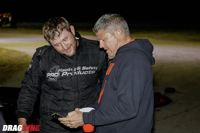 Despite all those mechanical disadvantages, Kye powered his Camaro to a stunning 3.621 at 207.21 mph to qualify 13th in the tightest, most competitive field of Pro Modified cars of all-time. The entire 32-car field was spread between top qualifier Mark Micke’s 3.591 and an anchor 3.647 — a mere .056 seconds. You’d have to go back some 25 or 30 years to find a steel-body car racing this competitively at a major Pro Modified race … and perhaps equally as long to find a third-gen F-body car of any material makeup. But then he defeated Mick Decker, Jr. in the opening round, and son Mike Decker III in the second round in a tight 3.661 to 3.662 drag race. Could he?