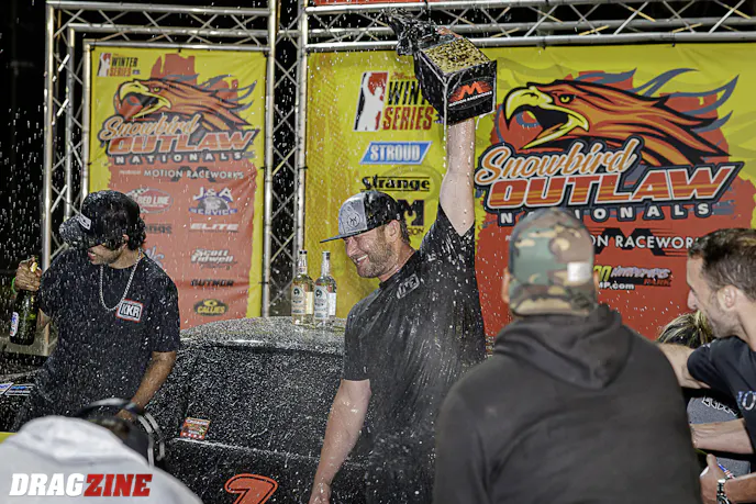 A win was still outrageously unlikely, even at eight cars … until it wasn’t. Kye gradually rekindled that low-3.60 magic from qualifying and drove by heavy-hitters Spencer Hyde, Kurt Steding, and Ken Quartuccio in the final round to pull off one of the greatest feats of this or any decade. That an unoptimized car like this one could win a Pro Modified race of some kind wasn’t necessarily unlikely, but one this stacked was seemingly impossible.