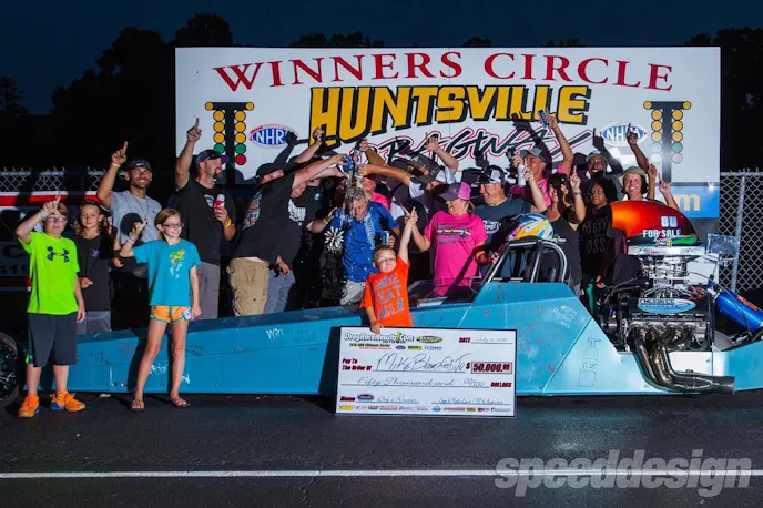 As the Brodix $25K kicked off on Friday, over 160 entries filled the staging lanes at the famed Huntsville Dragway to see who could reign supreme. When the sun set on Friday’s festivities, Alabama native Jeff Strickland took the automatic win in his SignPunk.com sponsored dragster over a red-lighting Thomas Bell.