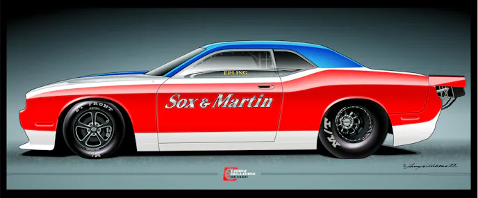 For drag racers and enthusiasts familiar with the legend and lore of NHRA history, few names are more recognizable than Sox & Martin. Ronnie Sox collected five NHRA championships and over 50 event wins, all while being noted for his prowess in driving a stick-shifted race car. In tribute to Sox and his partner, Buddy Martin, and their achievements in drag racing together, Leon Epling worked with Diane Sox of the Sox & Martin Foundation to bring back the livery on Epling’s new NHRA Factory Experimental (FX) race car.