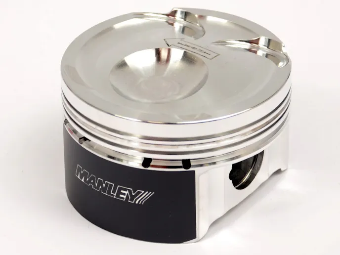 “Manley’s Platinum Series pistons are forged from race-proven 2618 aluminum alloy, which has superior strength under pressure. They’re designed to reduce reciprocating weight and have an offset wrist pin for quiet start-ups. The skirts are Moly-coated for extra durability and the pistons equipped with a pressure balance groove. It can also accommodate +1 mm valve sizes.”