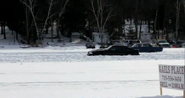 Drag racing is typically limited by weather conditions; precipitation and traction tend to not mix well and usually would result in very expensive encounters with the wall. However, there are diehards who will race regardless of the conditions, rain or even snow. Those of us in southern California are only plagued rain the occasional wind event, but the thought of drag racing in the rain let alone on a frozen river would never cross our minds. When the rest of country is whining about the local drag strips being closed for the winter bench racing becomes the predominant form of racing, but that is not the case in Merrill, Wisconsin. A video came to our attention documenting the complete total insanity known as the Merrill Ice Drags located in the Council Grounds State Park in Merrill, WI. When the temperatures drop down to the point where a river freezes enough to be used a racing surface you know it is beyond cold.