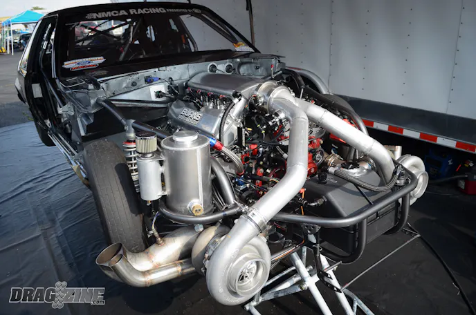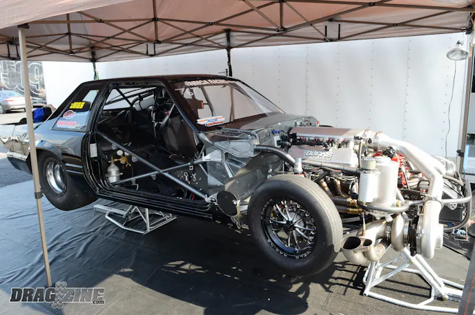 Stinnett has since purchased the former nitrous injected Fox body from Texas runner Taylor Lastor, and stuffed his 440 cubic inch mill from Jeff Burns Racing Engines in between the framerails in hopes of RVW supremacy. Stinnett unloaded with his first three-second run, a 3.97, that was later lowered to the new boosted small-block radial record with a 3.929-second blast at 188 mph, compliments of an astounding 1.00 sixty foot time!