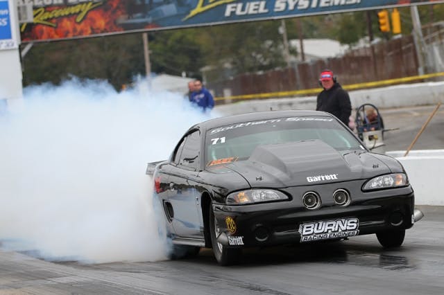 Stinnett’s machine relies on a 450 cubic inch small-block Ford engine built by Jeff Burns Racing Engines, a pair of Garrett turbochargers, and a chassis tuneup by none other than Wade Hopkins of Southern Speed Racing. You might remember Wade as one of the impressive minds behind the exploits of one John Kolivas. As has been the case with a number of the top runners in Outlaw 275 lately, there’s a torque converter from Performance Torque Converters on board as well.